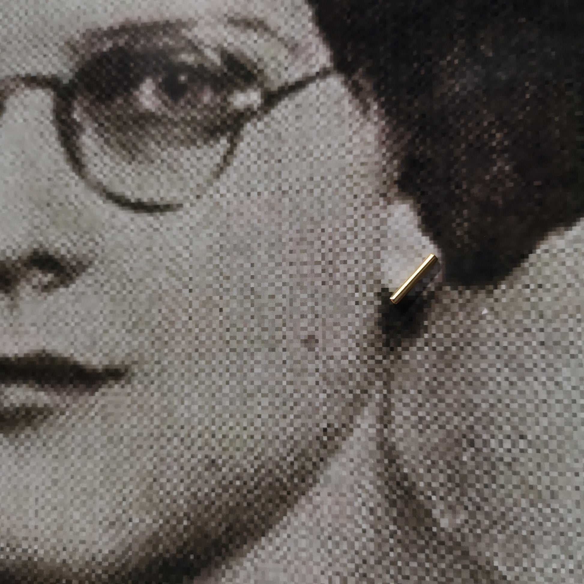 one of the oldies from 1995, a 12 mm tube for pierced ears. Goldplated or rhodiumplated. Non-allergic. Jewellery box included.