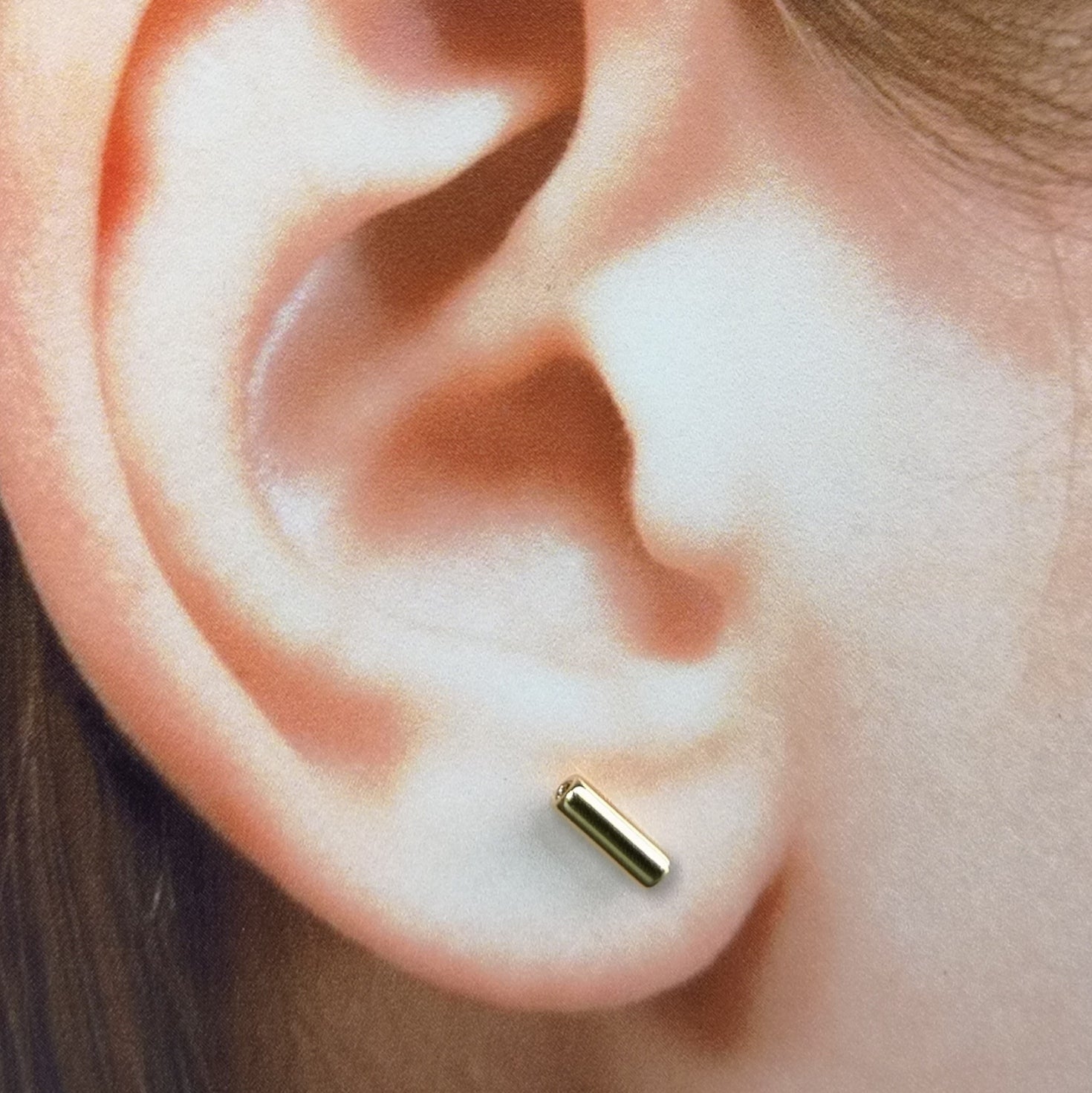 one of the oldies from 1995, a 4 mm tube for pierced ears. Goldplated or rhodiumplated. Non-allergic. Jewellery box included.