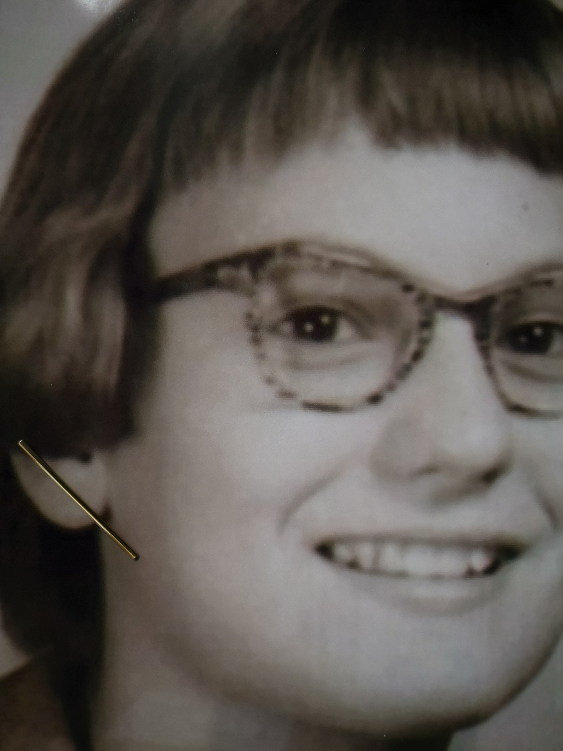 one of the oldies from 1995, a 50 mm thin tube for pierced ears with attachement in the middle. Goldplated or rhodiumplated. Non-allergic. Jewellery box included.