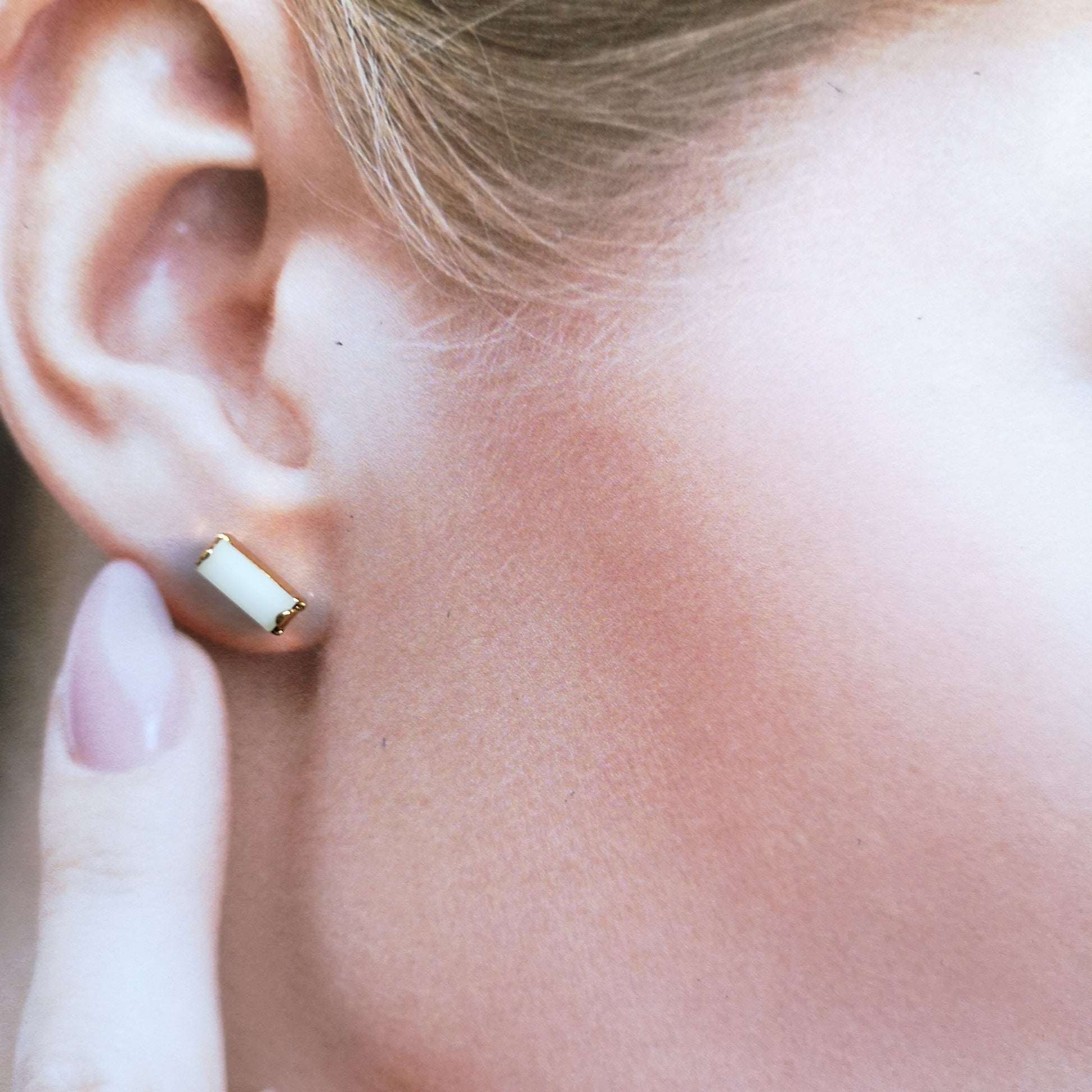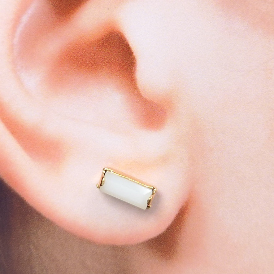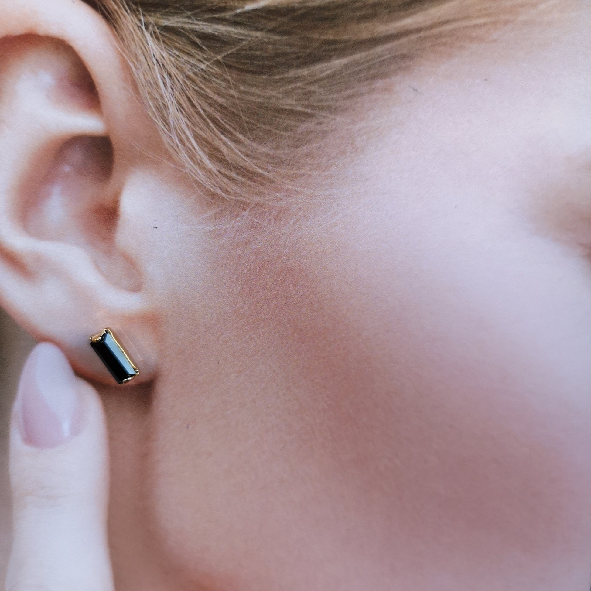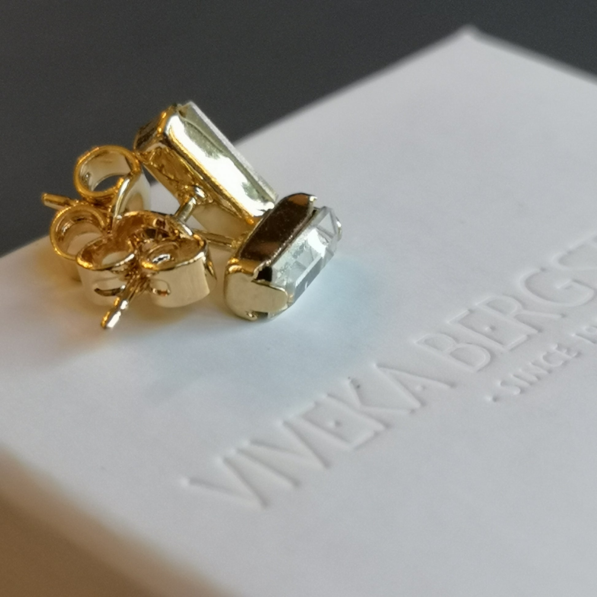 one of the oldies from 1995, a 7*3mm crystal for pierced ears. Goldplated or rhodiumplated. Non-allergic. Jewellery box included.