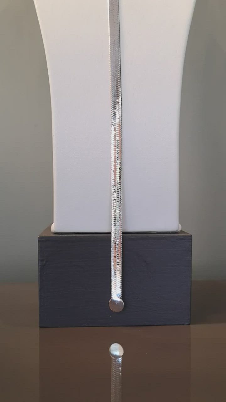 40 cm neck size 10 mm flat chain with 36 cm hanging chain reaching the navel. Gold- or rhodiumplated brass. Hypoallergenic. Jewellery box included.